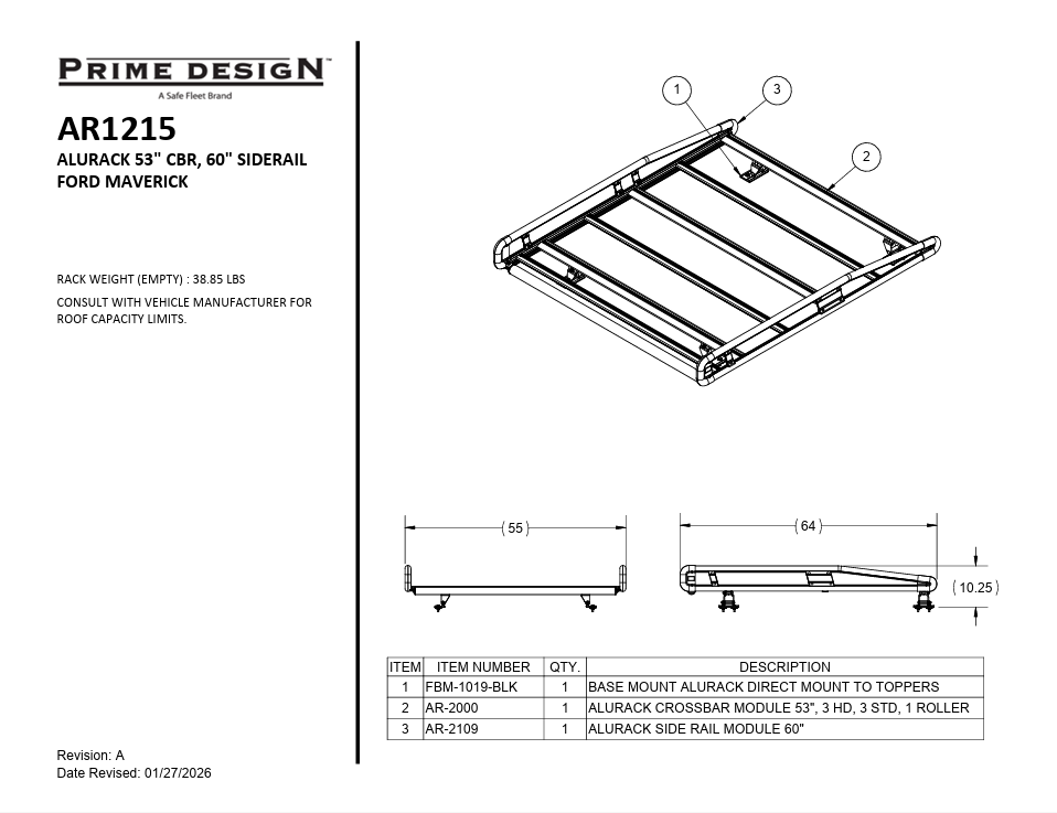 Prime Design AluRack AR1215 for Compact Ford Maverick Pickup w/ Topper