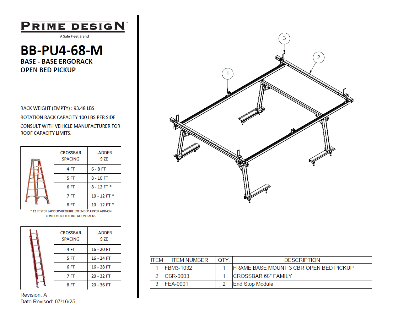 - Base (End Stop) - Prime Design's base model ladder rack