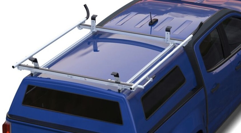 Increase the cargo and ladder carrying capacity with ErgoRack or AluRack on compact trucks with toppers such as these: Chevrolet Colorado, Ford Ranger, GMC Canyon, Nissan Frontier, Toyota Tacoma, Honda Ridgeline, Hyundai Santa Cruz, etc.